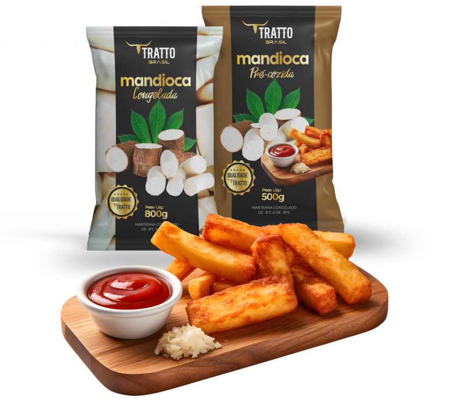 Graças ao seu congelamento ultrarrápido, a Mandioca Tratto Brasil Congelada preserva os nutrientes e o sabor, além de não conter conservantes artificiais nem glúten. A sua versão Pré-cozida é sequinha, crocante e muito macia, trazendo praticidade na hora de preparar receitas.